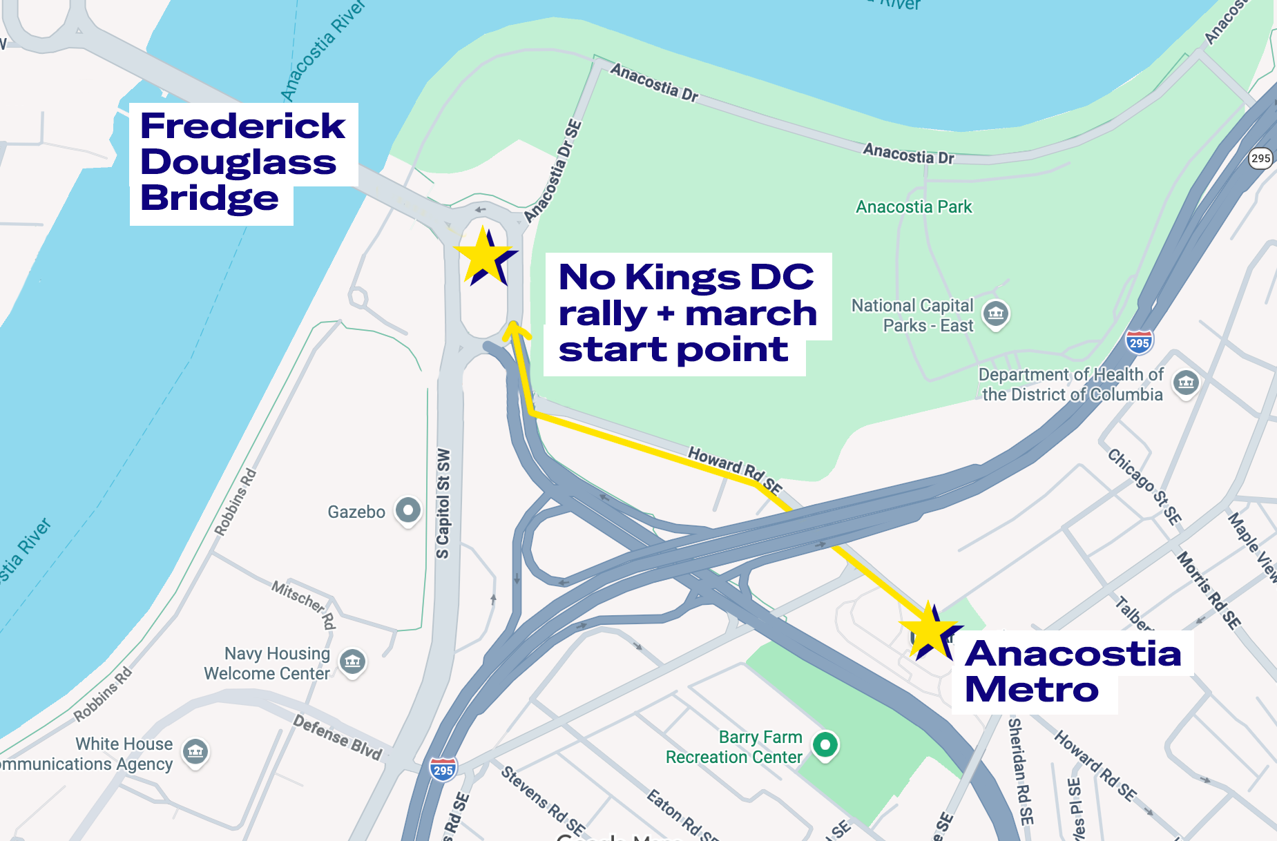 On March 28, join us to make it clear that No Kings means #FireStephenMiller. Rally with us starting at 1:30 PM on the southeast side of the Frederick Douglass Bridge and then march with us past Fort McNair where Miller is living. We’ll end at the Waterfront Metro with next steps for how everyone can take action to get #ICEout, #EndTheOccupation, and #FreeDC. Let us know you’ll be there.
