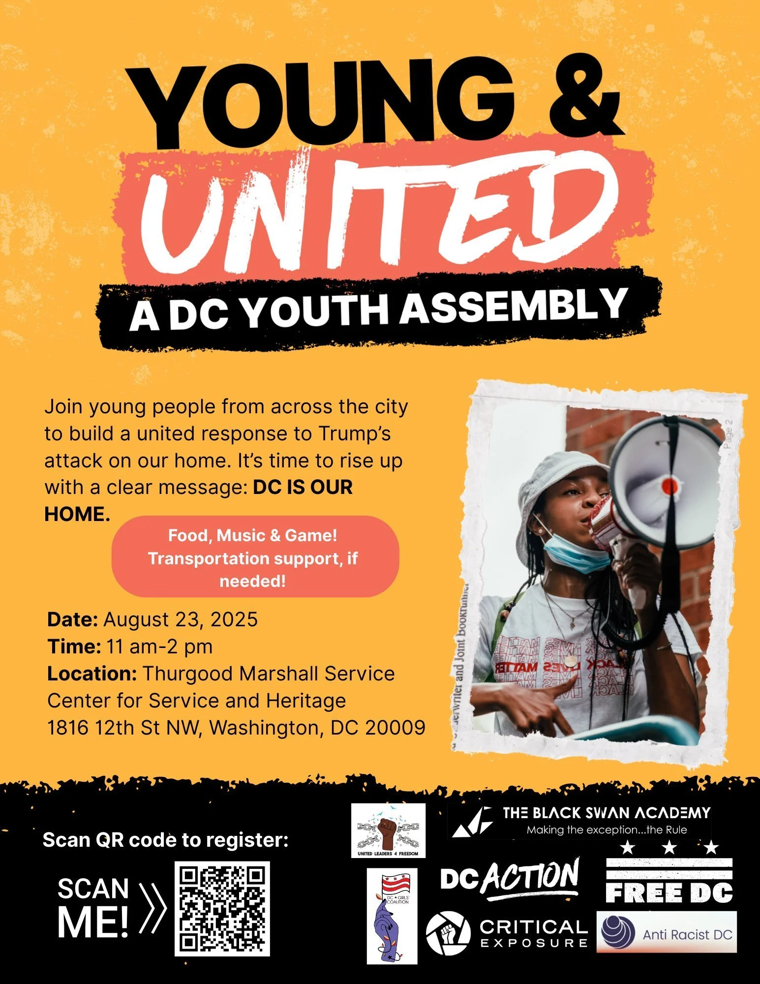 Join this event on August 23, co-hosted by United Leaders for Freedom, Black Swan Academy, DC Girls Coalition, DC Action, Critical Exposure, Anti-Racist DC, and Free DC.