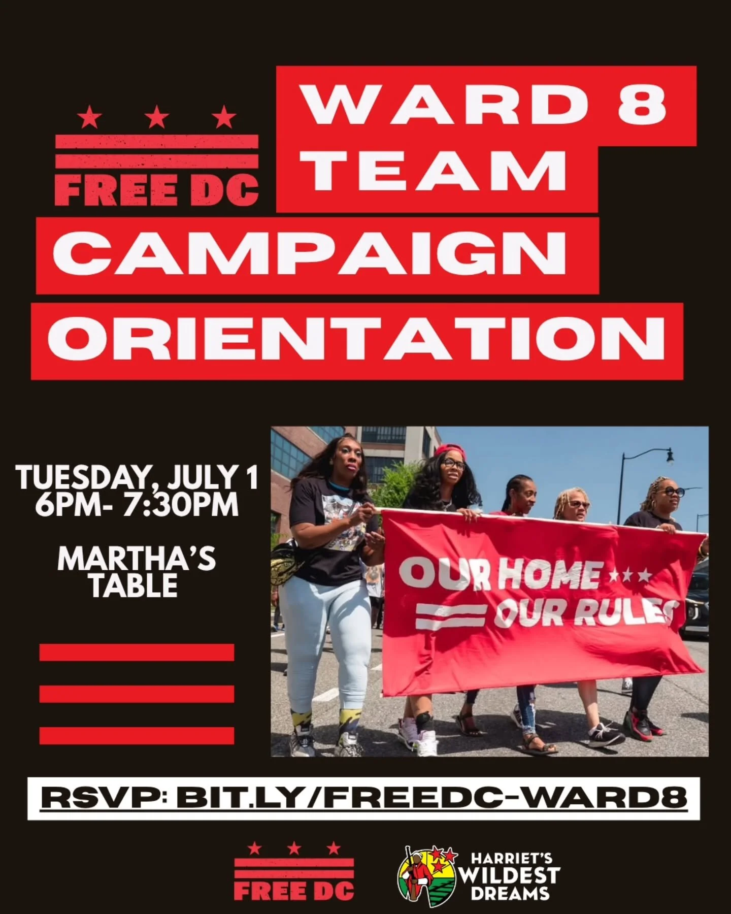 Join Harriet’s Wildest Dreams for a Campaign Orientation about Free DC to learn what this effort is about, our strategy to win, and how you can take action in the fight for DC’s autonomy.