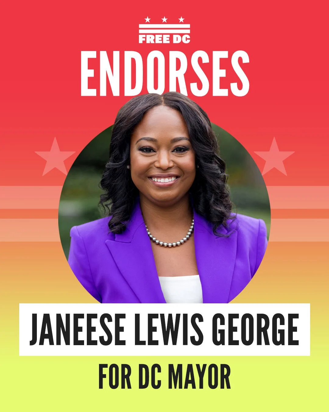 We are proud to endorse Janeese Lewis George to be DC's next mayor and Robert White to be DC's next Delegate to the U.S. House of Representatives. Please join us in supporting these outstanding leaders.