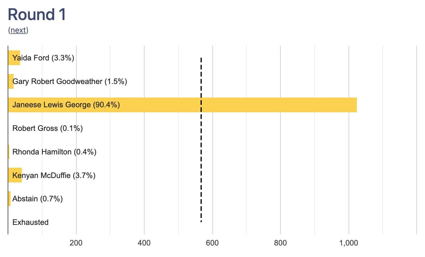 Free DC's endorsements are based on scored candidate questionnaires, an in-person candidate forum, a straw poll, and community voting. A total of 1,136 people participated in our community voting, of 6,249 eligible voters. Eligible voters were defined as DC residents and completed a Campaign Orientation as of March 14, 2026. This election was conducted online using a Ranked Choice Voting system. The full results of community voting are below.