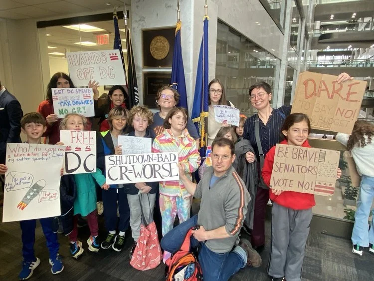 On March 10, 2025, the House of Representatives introduced a Continuing Resolution that would remove DC’s power over our local budget. Free DC showed up every day for a week together with union members, DCPS students, and thousands of neighbors to protect DC’s ability to control our own local budget.